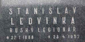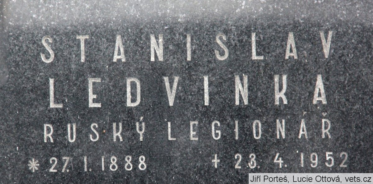 Ledvinka Stanislav, nar. 27.1.1885, Praha, domovská obec Rozdělov, Kladno. V RU armádě sloužil u 28. pěšího pluku jako vojín. Zajat 14.9.1914, Javorov. Do ČS legií v Rusku se přihlásil v Taganrogu, zařazen 13.7.1917 jako vojín k 8. střeleckému pluku. Demobilizován 9.6.1920. (zdroj databáze VÚA Praha)
