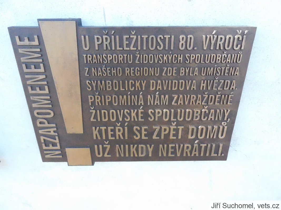 Pamětní deska a symbolická Davidova hvězda připomínají transport židovských obyvatel. Odhaleny byly v úterý 22.2.2022, přesně 80. let od prvního ze dvou transportů (druhý byl 26.2.1942).
