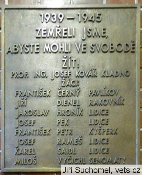 Umístění: Kladno, Jana Palacha 1840, deska na sloupu napravo od hlavního vchodu průmyslové školyNápis:
