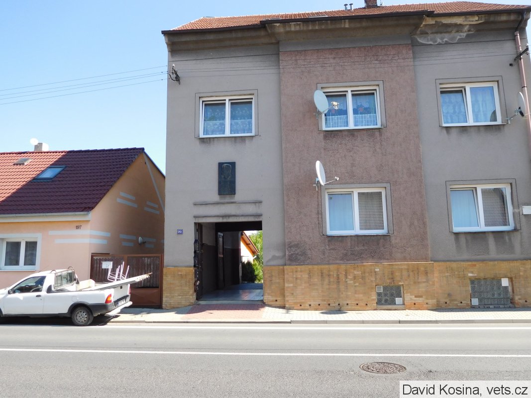 Umístění: Kladno, Unhošťská 213, bytový dům, na zdi nad vchodovými dveřmiV TOMTO DOMĚ ŽIL