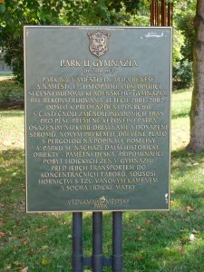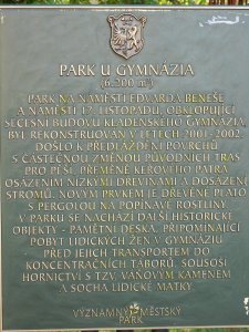 Tato pamětní deska odkazuje na pietní místo na budově gymnázia: http://www.vets.cz/vpm/15505-pametni-deska-obetem-2-svetove-valky/#15505-pametni-deska-obetem-2-svetove-valky a na tuto sochu: http://www.vets.cz/vpm/15506-pomnik-obetem-2-svetove-valky/#15506-pomnik-obetem-2-svetove-valky