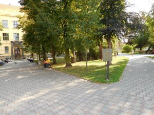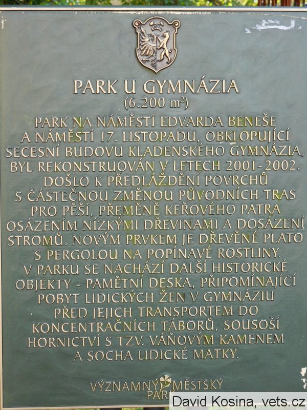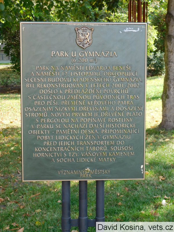 Umístění: Kladno, náměstí Edvarda Beneše, křižovatka ulic Váňova a Purkyňova, na okraji parku před budovou Gymnázia KladnoPARK U GYMNÁZIA