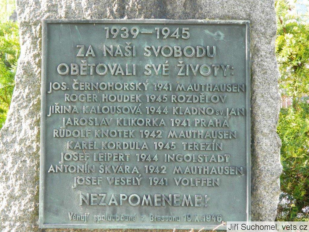 Věnují spoluobčané z Bressonu 19.X.1946.