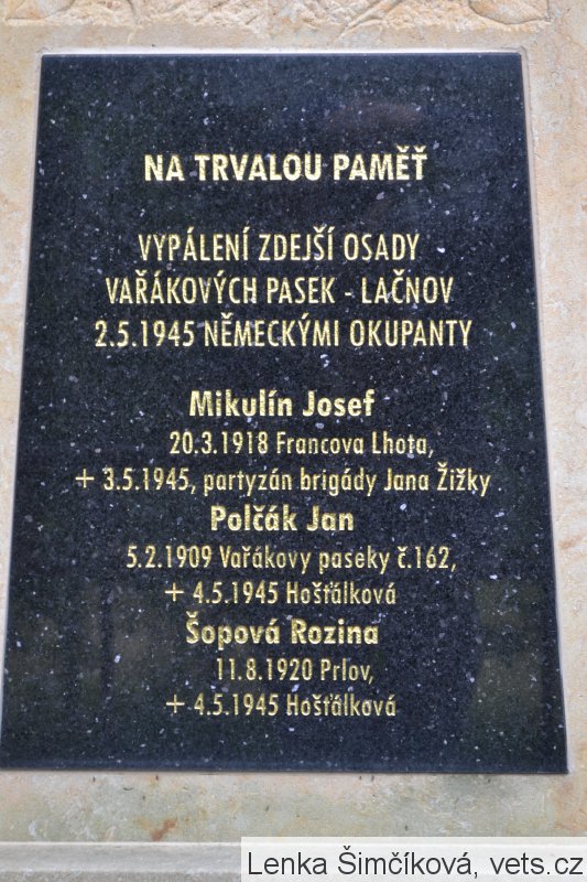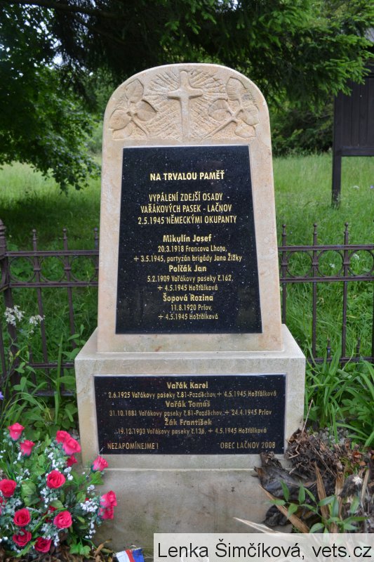 Umístění: Lačnov, na Vařákových pasekách, v místě vypálené osadyNA TRVALOU PAMĚŤ