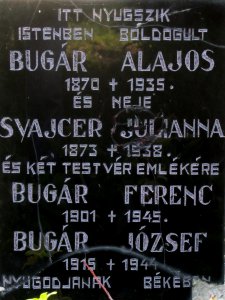 Ferenc a József Bugár sú uvedení na pomníku v obci medzi padlými v druhej svetovej vojne