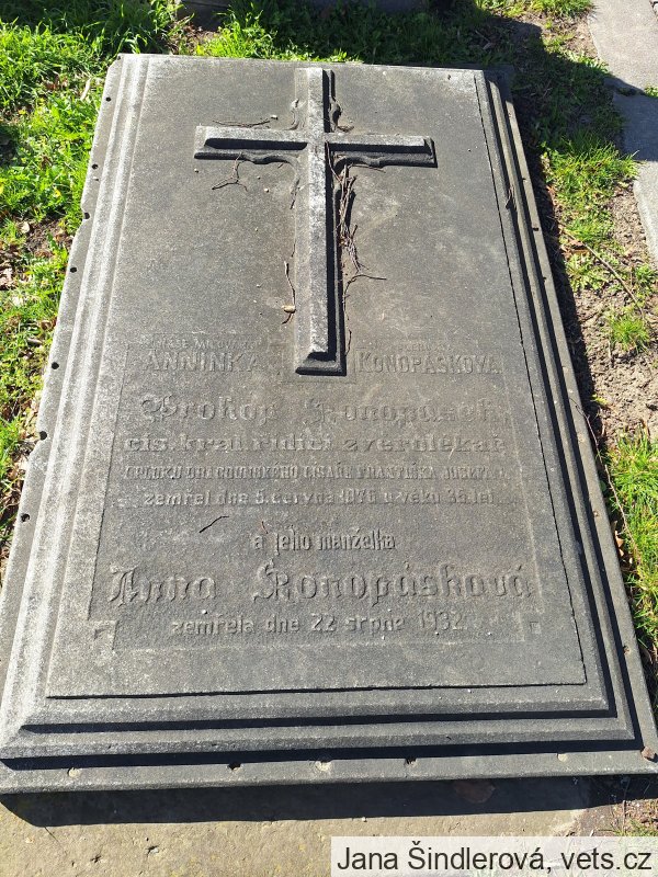 Umístění: Pardubice, Pod Břízkami, centrální hřbitov, vlevo u krematoriaPROKOP KONOPÁSEK