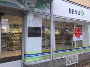 Umístění: Pardubice, Sladkovského 96, zeď budovy, lékárna BENU, rohový dům s ul. Třída Míru, centrumNápis: