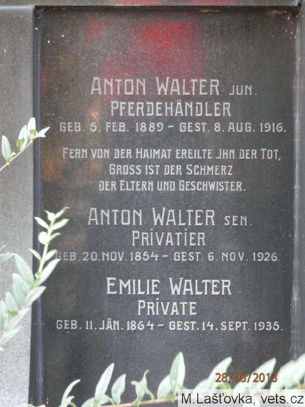 *19.1.1882, k. k. LIR. Nr. 9, od 10.5.1915 nezvěstný. 1925 prohlášen za mrtvého.