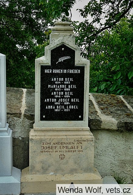 Umlauft Josef: *20.2.1874 Oberwald (Horní Les, zaniklá obec v sousedství Libouchce). Svobodný. ErsRes., IR. Nr. 42, 1. ErsKomp. +19.5.1897 Oberwald (dle VHÚ Königswald – Libouchec), sebevražda oběšením. 22.5.1897 zde pohřben. Nelokalizováno, pravděpodobně zrušeno.