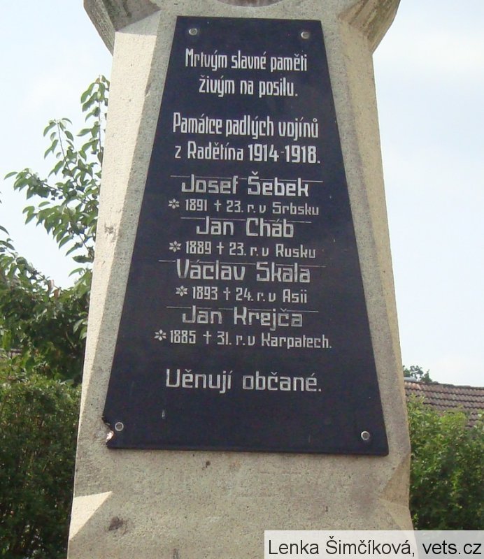 Umístění: Radětín, na návsi, u kapličkyNápis: