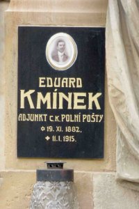Kmínek Eduard: *1882 Stará Paka, okr. Nová Paka (dnes okr. Jičín). Příslušný: Jičín. Ženatý. ResZugsf., TitFeldw., IR. Nr. 74, 2. Komp. +11.1.1915 k. u k. GarSpit. Nr. 16 Budapest, tyfus. 14.1.1915 tamtéž pohřben.