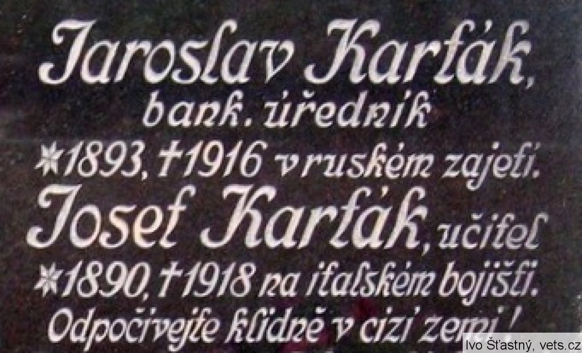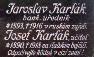 Karták Jaroslav: *1893. Einj.Freiw. Feldw., IR. Nr. 35, 1. ErsKom. V r. 1916 veden v nemocnice Kyjev, zajetí.