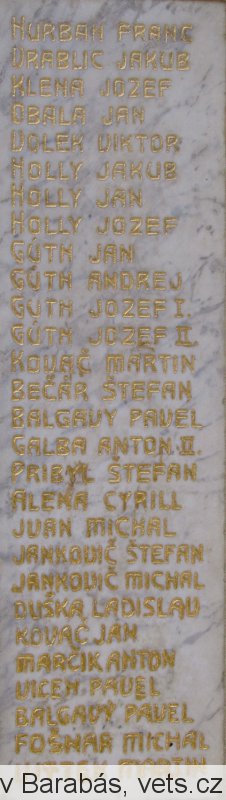 HURBAN FRANC, VRABLIC JAKUB, KLENA JOZEF, OBALA JAN, VOLEK VIKTOR, HOLLY JAKUB, HOLLY JAN, HOLLY JOZEF, GÚTH JAN, GÚTH ANDREJ, GUTH JOZEF I., GÚTH JOZEF II., KOVÁČ MARTIN, BEČÁR ŠTEFAN, BALGAVY PAVEL, GALBA ANTON II., PRIBYL ŠTEFAN, ALENA CYRILL, JUAN MICHAL, JANKOVIČ ŠTEFAN, JANKOVIČ MICHAL, DUŠKA LADISLAV, KOVÁČ JÁN, MARČIK ANTON, VICEN PAVEL, BALGAVÝ PAVEL, FOŠNAR MICHAL, VITTEK MARTIN