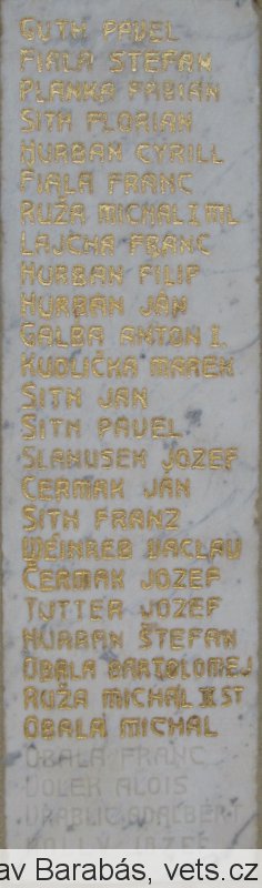 GUTH PAVEL, FIALA ŠTEFAN, PLANKA FABIAN, SITH FLORIAN, HURBAN CYRILL, FIALA FRANC, RUŽA MICHAL I ML., LAJCHA FRANC, HURBAN FILIP, HURBAN JÁN, GALBA ANTON I., KUDLIČKA MAREK, SITH JAN, SITH PAVEL, SLANUSEK JOZEF, CERMAK JÁN, SITH FRANZ, WEINREB VACLAV, ČERMAK JOZEF, TUTTER JOZEF, HURBAN ŠTEFAN, OBALA BARTOLOMEJ, RUŽA MICHAL II ST, OBALA MICHAL, OBALA FRANC, DOLEK ALOIS, VRABLIC ADALBERT, HOLLY JOZEF