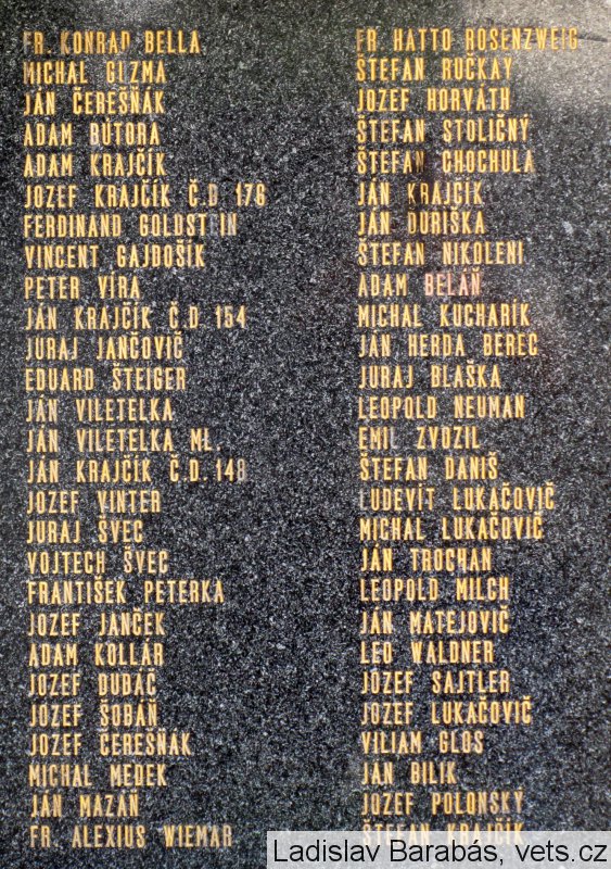 FR. KONRAD BELLA, MICHAL GIZMA, JÁN ČEREŠŇÁK, ADAM BÚTORA, ADAM KRAJČÍK, JOZEF KRAJČÍK Č. D. 176, FERDINAND GOLDSTEIN, VINCENT GAJDOŠÍK, PETER VÍRA, JÁN KRAJČÍK Č. D. 154, JURAJ JANČOVIČ, EDUARD ŠTEIGER, JÁN VILETELKA, JÁN VILETELKA ML., JÁN KRAJČÍK Č. D. 148, JOZEF VINTER, JURAJ ŠVEC, VOJTECH ŠVEC, FRANTIŠEK PETERKA, JOZEF JANČEK, ADAM KOLLÁR, JOZEF DUDÁČ, JOZEF ŠOBÁŇ, JOZEF ČEREŠŇÁK, MICHAL MEDEK, JÁN MAZÁŇ, FR. ALEXIUS WIEMAR, FR. HATTO ROSENZWEIG, ŠTEFAN RUČKAY, JOZEF HORVÁTH, ŠTEFAN STOLIČNÝ, ŠTEFAN CHOCHULA,