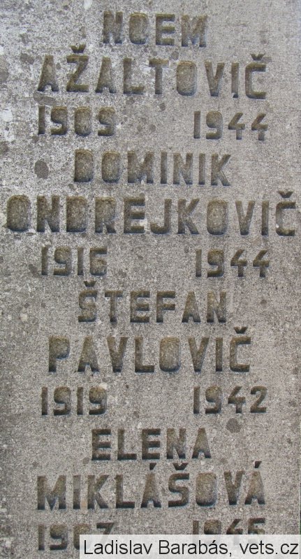 NOEM AŽALTOVIČ 1909-1944, DOMINIK ONDREJKOVIČ 1916-1944, ŠTEFAN PAVLOVIČ 1919-1942,