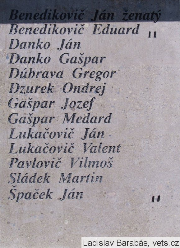 Hladík Jozef, Knazovič Jozef, Knazovič Pavel, Krištofík Jozef, Lukačovič Jozef,