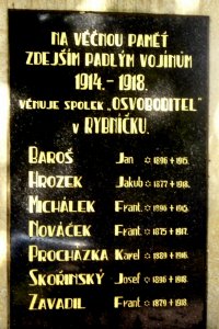 Umístění: Rybníček, před budovou OÚNápis: