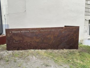 Umístění: Jihlava, Tyršova, u zdi Vysoké školy polytechnické Jihlava (VŠPJ)NA TĚCHTO MÍSTECH POPRAVIL KOMUNISTICKÝ REŽIM V LETECH 1950-52 NEVINNÉ OBĚTI.