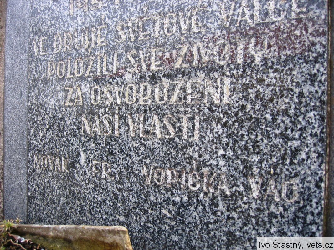 jméno NOVÁK FR. je uvedeno též na pomníku Obětem 1. a 2. světové války v obci