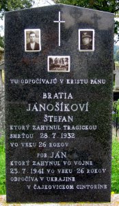 Umístění: Jablonica, v zadnej časti cintorína, vľavo od kaplnkyNápis: