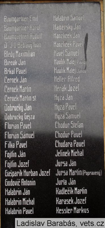 Baumgartner Emil, Baumgartner Karol, Baumgartner Rudolf, Dr. J.U. Beblavý Ivan, Bledy Maximilián, Birčák Ján, Brkal Pavel, Černek Ján, Černek Martin, Černek Martin st., Dobrucký Ján, Dobrucký Gejza, Florián Pavel, Florián Sámuel, Filka Pavel, Fojtlin Ján, Fojtlin Jozef, Gašparik Hurban Jozef, Godovič Antonín, Halabrin Ján, Halabrin Michal, Halabrin Pavel, Halabrin Sámuel, Hamerský Ján, Hanzliček Ján, Hanzliček Pavel, Havel Sámuel, Havlik Matej (Pavlov), Havlik Matej (Janov), Heller Alfred, Herák Jozef, Hýža Ján, Hýža Pavel, Hýža Sámuel, Chodúr Štefan, Chodúr Pavel, Chudara Pavel, Jelinek Michal, Jursa Ján, Jursa Martin (Popravený), Jurta Ján, Kadlečik Martin, Karasek Jozef, Kessler Markus