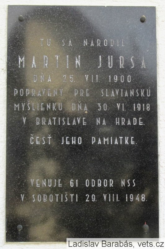 Martin Jursa bol počas prvej svetovej vojny zajatý v Rusku a neskôr vymenený za ruských zajatcov. Po príchode do Sobotišťa na mesačnú dovolenku šiel na obecný úrad a žiadal od notára F. Kleina cukor a múku pre svoju rodinu. Notár ho odmietol a pohádali sa. Ihneď ho však nahlásil na veliteľstvo do Bratislavy, ktoré ho povolalo do služby ako boľševika. Vojaci 72 p. pluku boli roztrpčení dlhou vojnou a zlou stravou, čo vyvolalo protesty. Po jednom proteste stráž zajala niekoľkých vojakov, medzi nimi aj T. Jursu, ktorý bol odsúdený na smrť zastrelením. Rozsudok bol vykonaný 10. júna 1918 na bratislavskom hrade. Pochovaný je v Bratislave na cintoríne v Slávičom údolí.