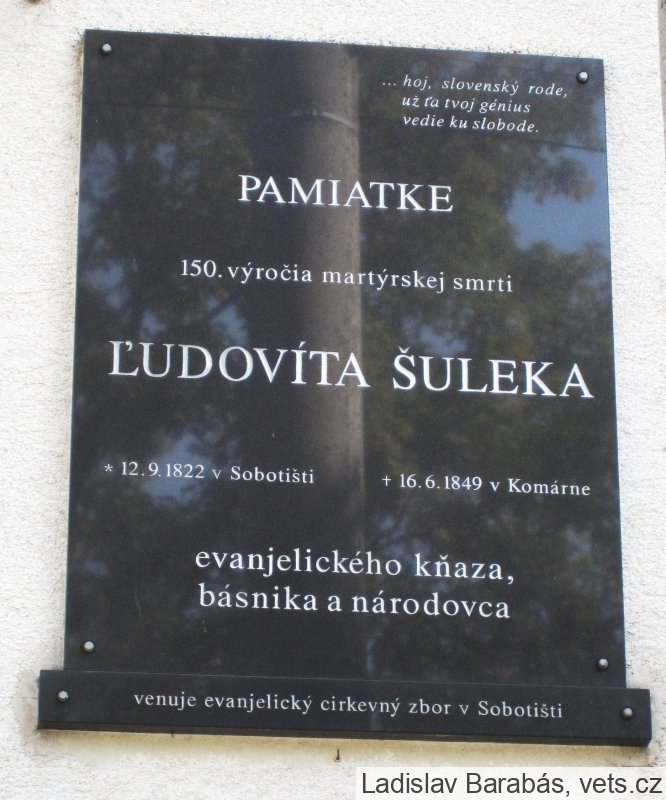 Umístění: Sobotište, na budove evanjelickej fary1848 – 1948