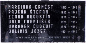 MARCINKA ERNEST 1913-1945, RASČÁK ŠTEFAN 1905-1945, ZEMAN AUGUSTÍN 1875-1945, VALO FRANTIŠEK 1920-1944, URBANEK ĽUDEVÍT 1920-1944, JULINIY JOZEF 1921-1943