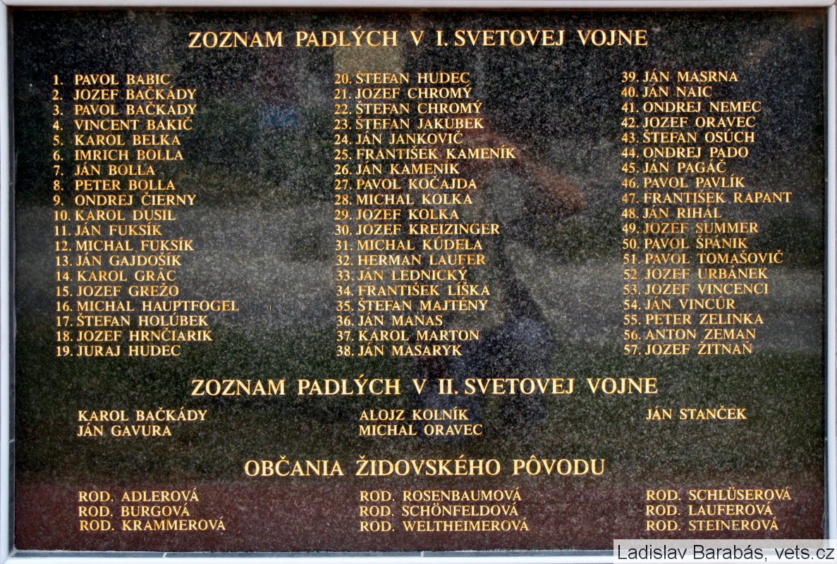 1. PAVOL BABIC, 2. JOZEF BAČKÁDY, 3. PAVOL BAČKÁDY, 4. VINCENT BAKIČ, 5. KAROL BELKA, 6. IMRICH BOLLA, 7. JÁN BOLLA, 8. PETER BOLLA, 9. ONDREJ ČIERNY, 10. KAROL DUSIL, 11. JÁN FUKSÍK, 12. MICHAL FUKSÍK, 13. JÁN GAJDOŠÍK, 14. KAROL GRÁC, 15. JOZEF GREŽO, 16. MICHAL HAUPTFOGEL, 17. ŠTEFAN HOLÚBEK, 18. JOZEF HRNČIARIK, 19. JURAJ HUDEC, 20. ŠTEFAN HUDEC, 21. JOZEF CHROMÝ, 22. ŠTEFAN CHROMÝ, 23. ŠTEFAN JAKUBEK, 24. JÁN JANKOVIČ, 25. FRANTIŠEK KAMENÍK, 26. JÁN KAMENÍK, 27. PAVOL KOČAJDA, 28. MICHAL KOLKA, 29. JOZEF KOLKA, 30. JOZEF KREIZINGER, 31. MICHAL KÚDELA, 32. HERMAN LAUFER, 33. JÁN LEDNICKÝ, 34. FRANTIŠEK LÍŠKA, 35. ŠTEFAN MAJTÉNY, 36. JÁN MANAS, 37. KAROL MARTON, 38. JÁN MASARYK, 39. JÁN MASRNA, 40. JÁN NAIC, 41. ONDREJ NEMEC, 42. JOZEF ORAVEC, 43. ŠTEFAN OSÚCH, 44. ONDREJ PADO, 45. JÁN PAGÁČ, 46. PAVOL PAVLÍK, 47. FRANTIŠEK RAPANT, 48. JÁN RIHÁL, 49. JOZEF SUMMER, 50. PAVOL ŠPÁNIK, 51. PAVOL TOMAŠOVIĆ, 52. JOZEF URBÁNEK, 53. JOZEF VINCENCI, 54. JÁN VINCÚR, 55. PETER ZELINKA, 56. ANTON ZEMAN, 57. JOZEF ŽITŇAN