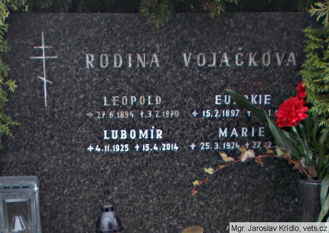 Leopold Vojáček, *27.6.1894, místo narození: Lazce, okr. Olomouc, bydliště: Lazce; Štěpánov okr. Olomouc; Šternberk, poslední hodnost v legiích desátník, hodnost Rakousko-uherské armády vojín, datum přihlášení do legií 12.10.1916, místo neuvedeno, datum zařazení do jiné (další) legie 7.8.1917, konec v legiích 28.9.1920, zkratky armád, u kterých sloužil LR, poslední útvar R-U armády 54. p. pl., první a poslední útvar v legiích 5. stř. pl., zajetí 8.3.1915, Karpaty, kód DM, prameny: osobní karta legionáře a legionářský poslužný spis,