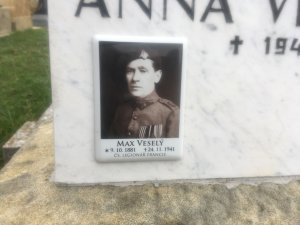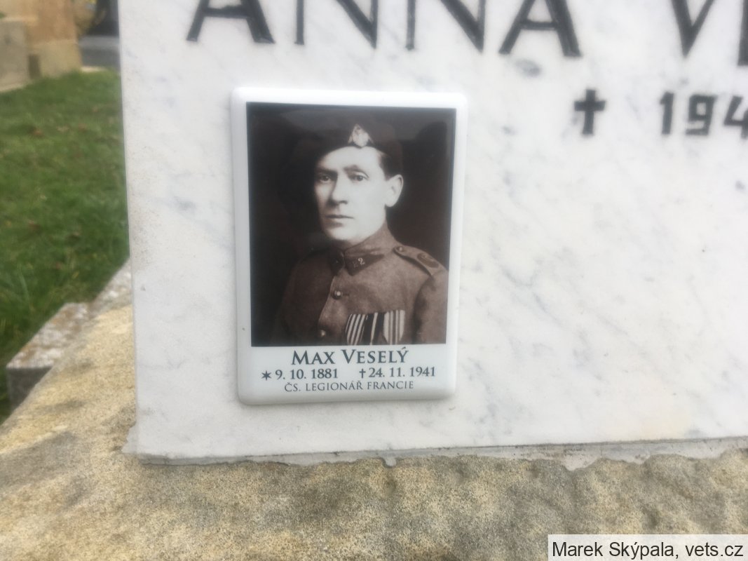 Max Veselý se narodil v Hodolanech, žil v Olomouci a pracoval jako holič. Zajat byl dne 4.12.1914 v Srbsku jako vojín c.k. 11. pěšího pluku. Do čs. vojska se přihlásil dne 2.3.1918 a dne 8.4.1918 nastoupil jako vojín k 21. střeleckému pluku (francouzských legií). Službu v legiích ukončil dne 16.5.1919.