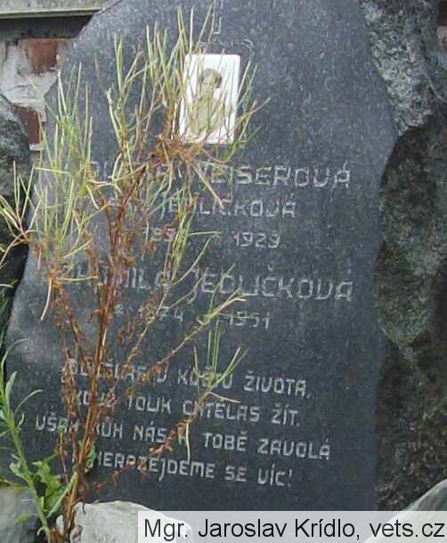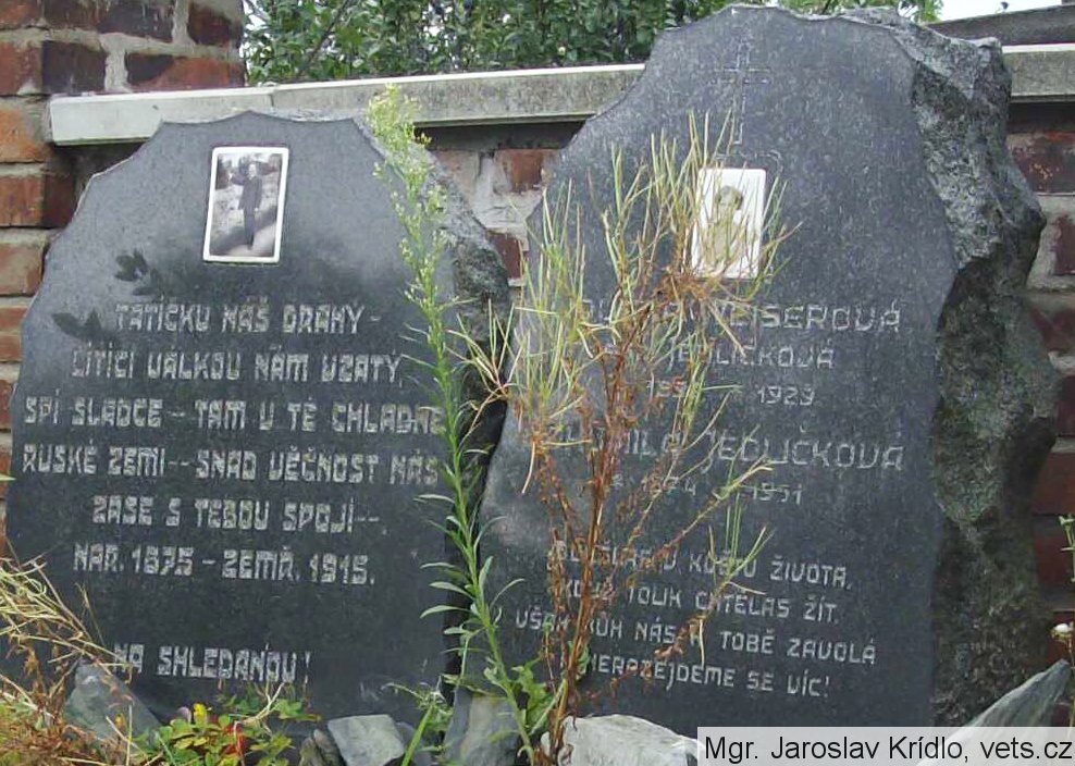 že jde jmenovitě o kenotaf padlého vojáka Jedličky, Oběti 1. světové války, lze vyčíst z prvé náhrobní desky a to se jmény, jeho dcery LIDUŠKA WEISEROVÁ, roz. JEDLIČKOVÁ *189? +1929 a jeho manželky BOHUMILA JEDLIČKOVÁ *1874 +1951