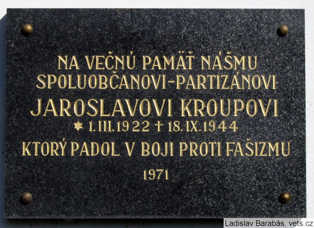Pamätná tabuľa Jaroslav Kroupa
