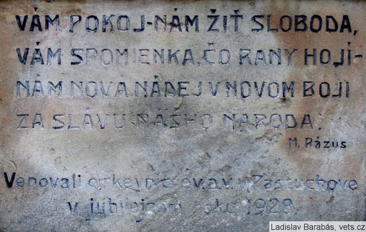 Umístění: Pastuchov, na cintoríne pod cestou, oproti vchoduNápis: