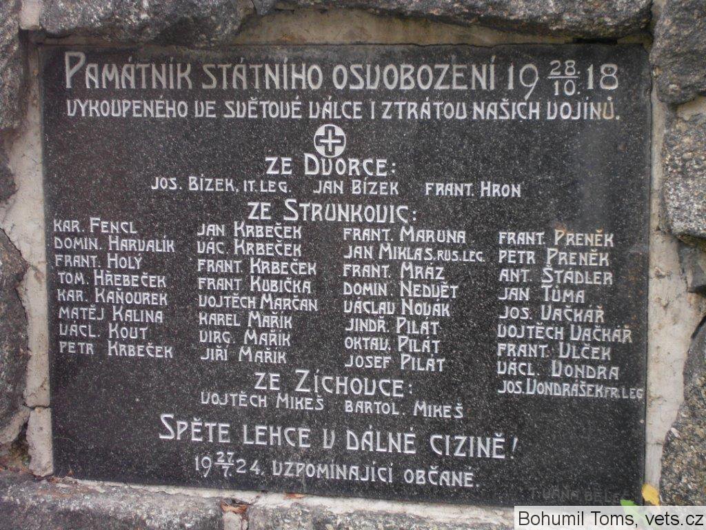 Umístění: Strunkovice nad Blanicí, na návsi u řeky na malém prostranství před prodejnou potravinNápis: