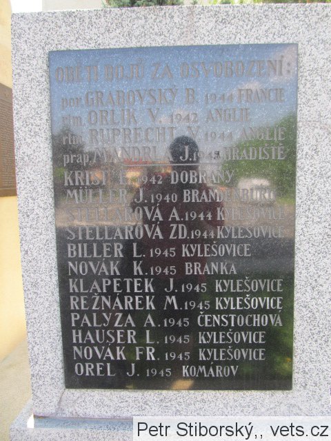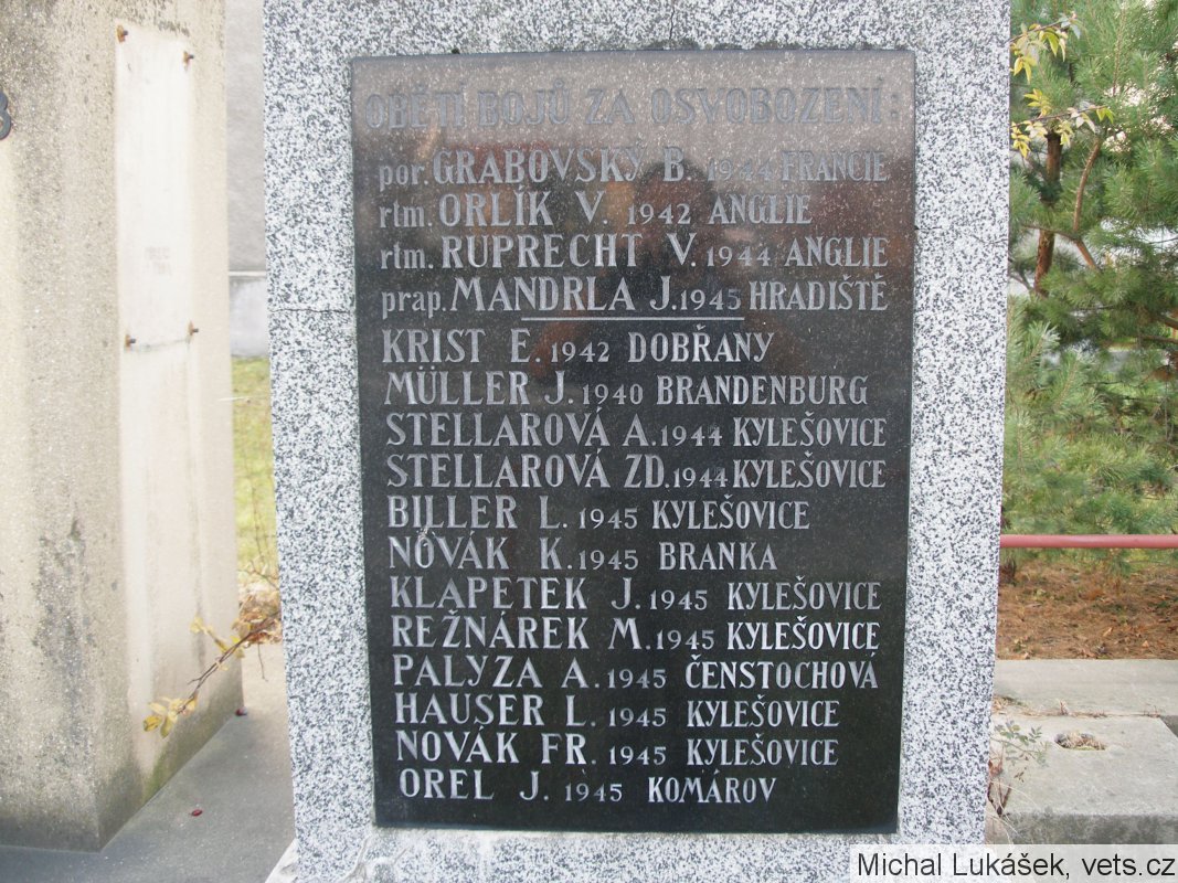 Grabovský Bohuslav, četař, osobní číslo Z; J-822, příslušník MNO-VB, Zvláštní skupina, nar. 19.1.1917, Kylešovice. Odveden 26.9.1939, Agde, Francie, četař. Padl 1.9.1944 jako příslušník výsadku Intransitive, byl zastřelen v Terezíně.