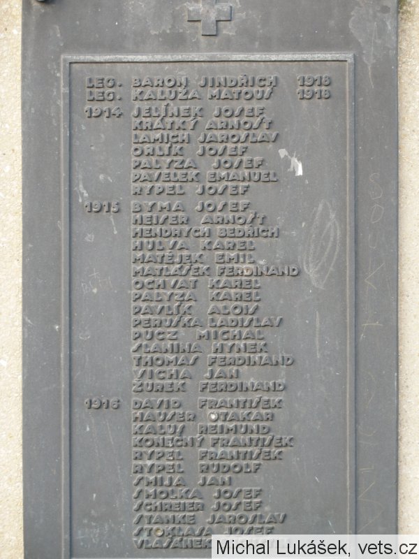 Baron Jindřich, nar. 19.6.1895, Kylešovice. V RU armádě sloužil u 15. zeměbraneckého pěšího pluku jako četař. Zajat 21.7.1916, Brestečko. Do ČS legií v Rusku zařazen 7.11.1917 jako vojín 5. střeleckého pluku. Padl 16.7.1917 u Chudlinska, pohřben v Jevgeniovce.