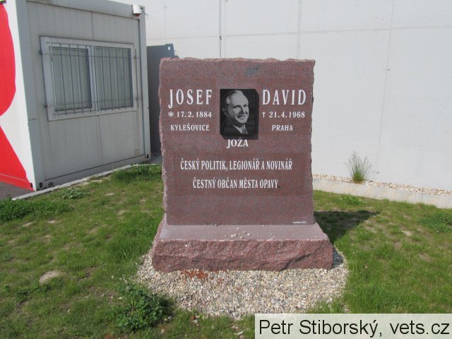 Pomník odhalen 17. února 2014, za přítomnosti hejtmana Moravskoslezského kraje Miroslava Nováka a primátora města Opavy prof. Zdeňka Jiráska. Josef David bojoval za první světové války v řadách rakousko-uherské armády, ale roku 1915 přeběhl do ruského zajetí. Po pobytu v zajateckých táborech se začal angažovat v Československých legiích. Za legionáře byl zvolen v červnu 1921 poslancem Národního shromáždění. Tento opavský politik, poslanec působil i jako novinář.