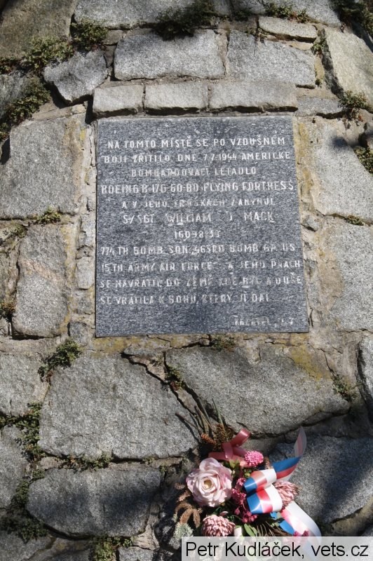 Zadní střelec amerického bombardéru William J. Mack byl zabit ve vzdušném boji palbou německého stíhače. Zbytek posádky se z poškozeného bombardéru zachránil na padácích, letadlo s mrtvým střelcem dopadlo do lesa za pomníkem.