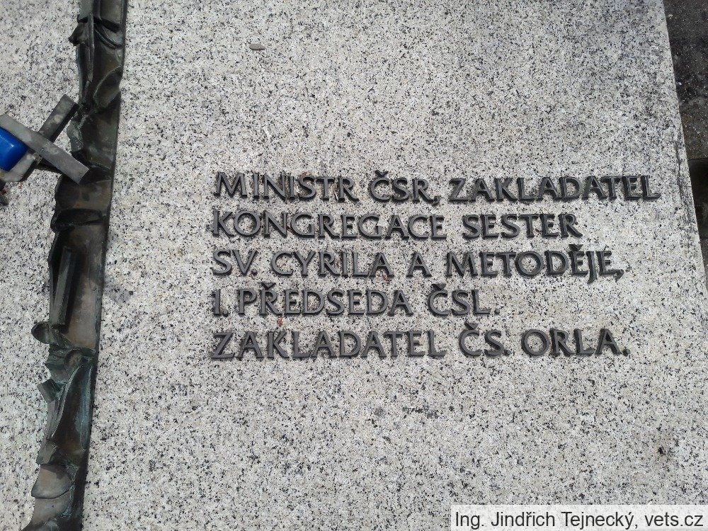 Pochován byl 2x. Poprvé za asistence StB, ale i za přítomnosti mnoha obyvatel Grygova a Velkého Týnce, kteří se o pohřbu dozvěděli, byl uložen do hrobu své matky. Až 12. října 1991 byly jeho ostatky převezeny a uloženy podle jeho přání na hřbitově na Velehradě – v sídle kongregace sester sv. Cyrila a Metoděje, kongregace, kterou v r. 1928 tento významný politik 20. století zakládal.