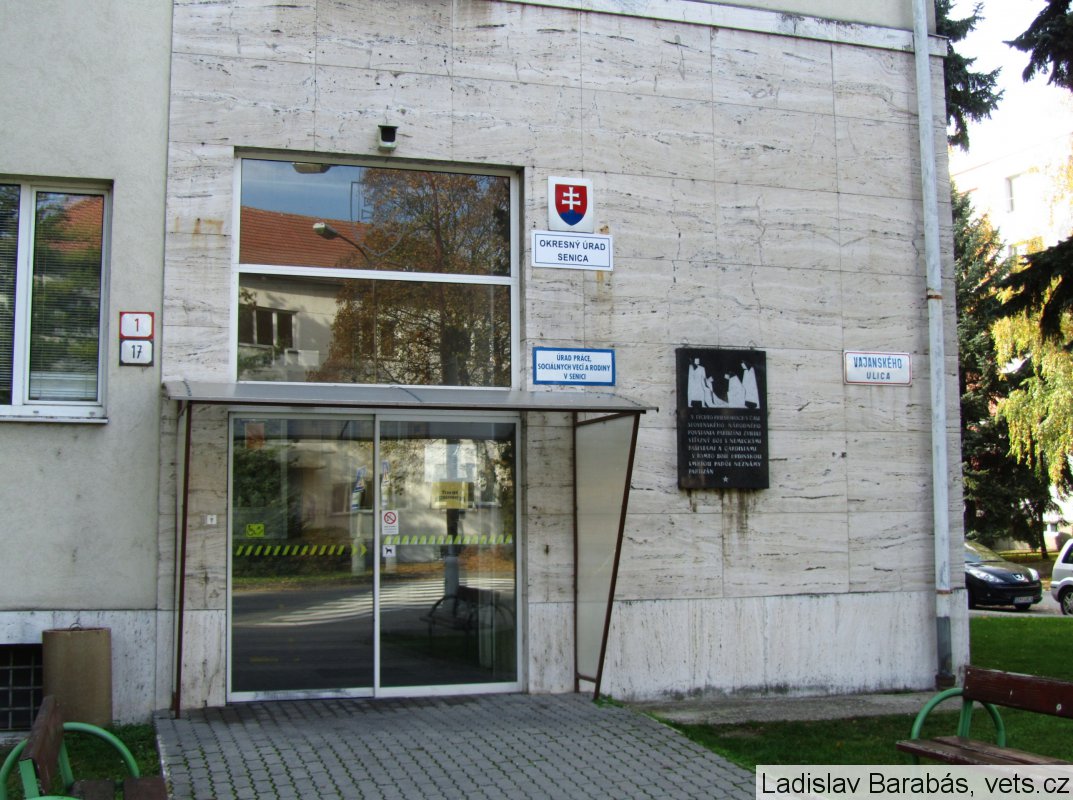 Umístění: Senica, Vajanského 1, roh ulíc Vajanského a BottovaNápis: