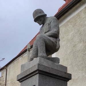 Poděkování pohotovému panu Paulovi (letitému promítači poběžovického kina, patriotovi a milovníkovi Poběžovic). V roce 2015, jedno páteční odpoledne - přesně ve 13h - mi zavolal se slovy: "Janino, upaluj se podívat do ulice ke škole. Válí se tam "hlava vojáka", mám dojem, že to je ten od kostela." Hlava se válela kus od trupu, kterému chyběla ruka (jestli si dobře vybavuji).