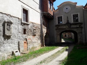 Marradasův vpád do Poběžovic připomíná pamětní deska na zdi před vstupem do zámku.