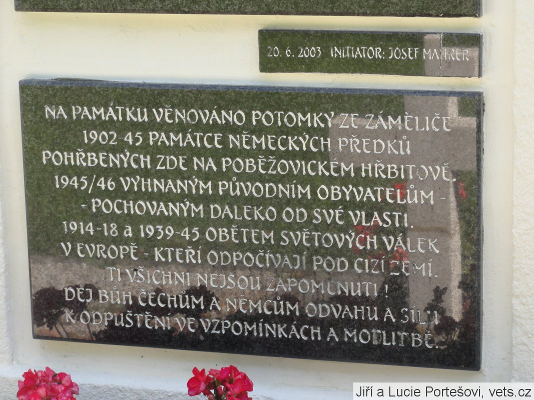 V Poběžovicích na Domažlicku je na místním hřbitově pohřbeno přibližně 57 obětí pochodů smrti z jara 1945 ve třech hromadných hrobech. V prvním se nacházejí vězňové zastřelení strážnými poblíž Vojanova. Ten je opatřen nápisem "Zemřeli za svobodu národů!" Druhý a třetí uchovávají ostatky žen z pochodu smrti ze Svatavy do Nýrska., které byly omylem zabity spojeneckými hloubkovými letci mezi Hostouní a Poběžovicemi. Na jednom z náhrobků je umístěn hebrejský a český nápis. Český tohoto znění: "Zde leží přesně nezjištěný počet židovských dívek. Jejich jména zná pouze Bůh. Dříve než poznaly štěstí lásky a života, zemřely při pochodu smrti v roce 1945." Hebrejský hovoří o počtu 11 obětí. Na posledním náhrobku je pak uvedeno: "Vděčni Vám ženy, které jste v pochodu smrti s duší čistou a vznešenou zde kráčely, vděčni Vám, muži, kteří jste zde s čelem jasným a vůlí nepoddajnou za pravdu životy své kladli, vděčni Vám, cizinci, kteří navždy v našich srdcích vlastními bratry a sestrami zůstanete a pokoj věčný Vám za dílo nesmrtelné, neb sláva naše Vaše jest a žízeň po svobodě i tep života Vašeho posvátným odkazem co vzor obětí buď nám i našim dětem."[