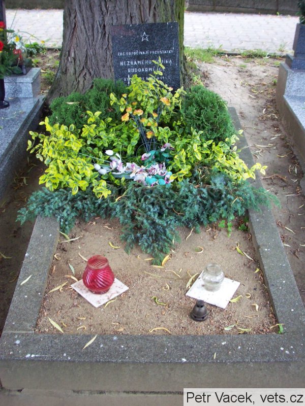 Roku 1945 byl zbudován malý hrob, následovala exhumace a odvoz ostatků do Hustopečí. Dnešní deska odhalena v 70. letech na náhodném místě na hřbitově. (zdroj databáze CEVH MO ČR)