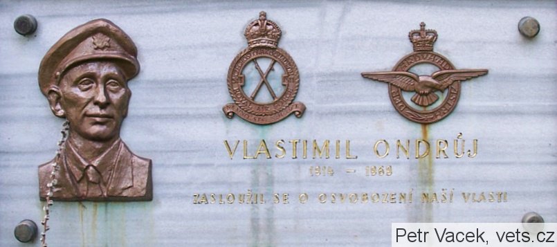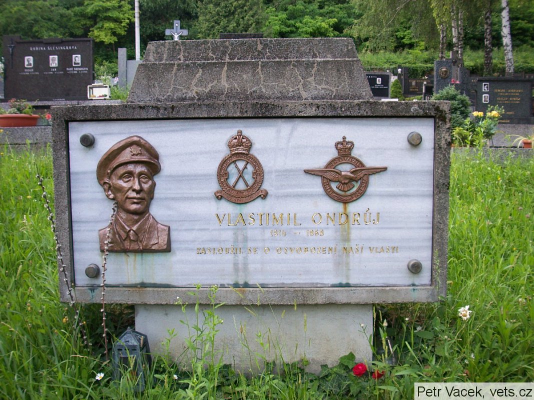 Plk. i. m. Vlastimil Ondrůj (14.11.1914 - 31.1.1969) absolvoval v roce 1937 Vojenskou akademii v Hranicích a nastoupil k děl. útvaru v Plaveckém Podhradí, odtud byl převelen do Prostějova a přeškolen na let. navigačního důstojníka. V listopadu 1939 odchází z Protektorátu a lodí se dostává přes Maďarsko, Jugoslávii do Francie a po její kapitulaci do Velké Británie. Po převelení od pozemních jednotek k letectvu a absolvování výcviku pozorovatele (AOS - Air observer school), střelce (AGS – Air gunnery school Dumfries září 1941 – březen 1942) a výcviku v COTF – Czech operation training unit je přiřazen k 311. čs. bomb peruti, kde se díky svým schopnostem a výsledkům stává od 11.1.1945 do 13.8.1945 posledním velitelem její B-letky (je jedním z několika málo pozorovatelů v britském král. letectvu, kterým se podařilo zastávat tuto funkci, zpravidla vyhrazenou pro piloty). Do vlasti se vrací v hodnosti štáb. kapitána 21.8.1945. Ještě roku 1946 absolvuje v Anglii přeškolovací kurs na letouny De Havilland Mosquito. Po komunistickém převratu je vyhozen z armády, v lednu 1949 zatčen, degradován a odsouzen k trestu smrti, později změněném na doživotí. Byl vězněn v Plzni na Borech, Leopoldově, Opavě a na uranových dolech v Jáchymově, kde při důlním neštěstí utrpěl těžké zranění. Po 9 a půl letech (4.1.1949 – 28.3.1958) je propuštěn na svobodu a pracuje jako nádeník v brněnské plynárně do roku 1969, kdy tragicky zahynul při výbuch plynu. V roce 1991 je povýšen do hodnosti plukovníka in memoriam a 16.11.1991 je mu v rodné obci odhalen pomník.