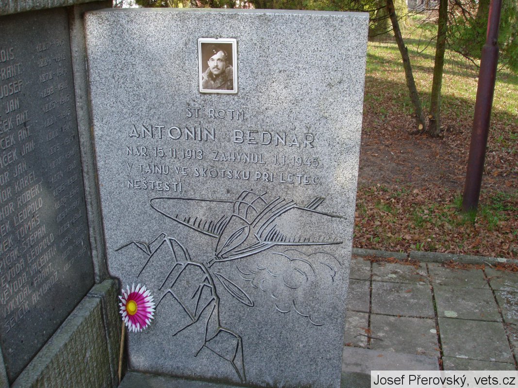 Bednář Antonín, štábní rotmistr, osobní číslo Z; Z-10.500.478, nar. 20.11.1913, Rychtářov, příslušník RAF, 311. peruť. Odveden 27.7.1939, PL; Krakov a SV, četař čs. Zahynul 1.1.1945 při havárii po startu k operačnímu letu, Liberator FL949 (PP-Y), Británie, ostrov Hoy, zátoka Rackwick, Orkneje. Pohřben Tain, St. Duthus, hrob č. 48. (zdroj databáze VÚA Praha)