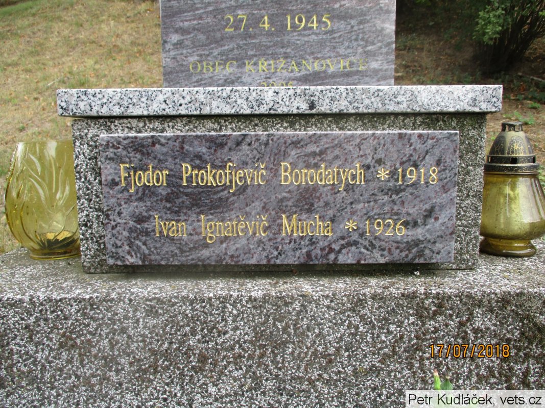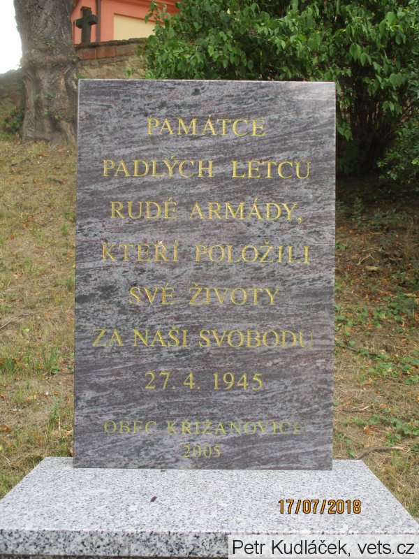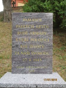 CENEK METOD. 1883 1917, ŠUJAN FRANT. 1896 1917, ŠUJAN KAREL 1898 1917, CENEK JAN 1879 1918, ČERVINKA ONDŘ. 1878 1918, FLORIAN FRANT. 1878 1918, RŮŽIČKA FRANT. 1876 1918, ZNEBEJANEK ARN. 1897 1918, ŠKUREK JOSEF 1892 1919, LEGIONÁŘ RŮŽIČKA FRANT. POPRAVEN 19/VI 1918 U SANT DONNA DI PIAVE V ITÁLII RAKOUSKOU JUSTICÍ.