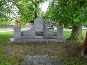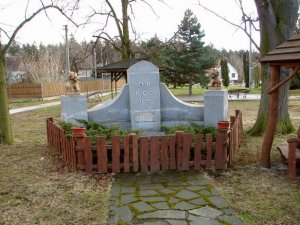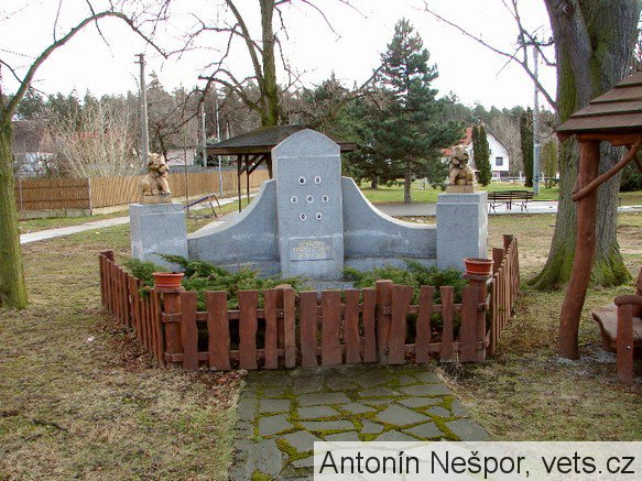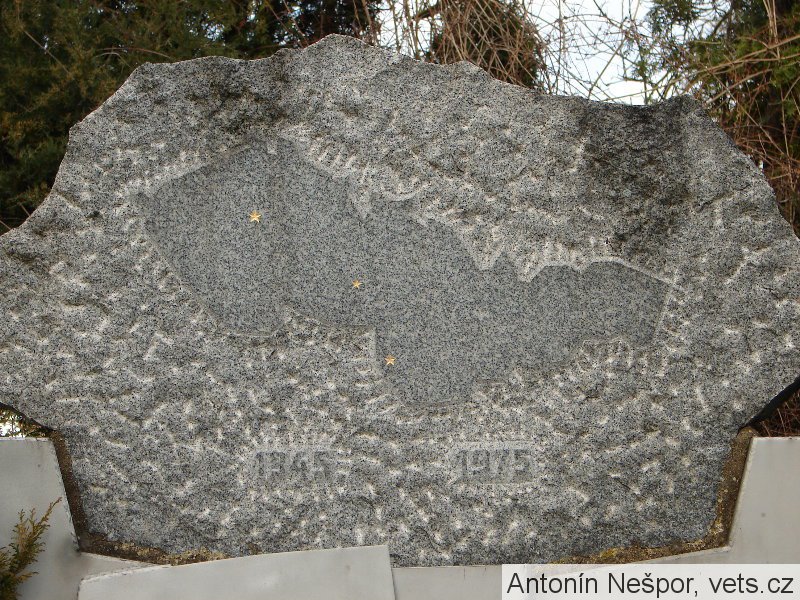 Ze soklu s veršem od Vítězslava Nezvala na černé desce, vystupují schématické ruce z pískovce držící žulový reliéf ČSR. Památník odhalen v květnu 1980 k výročí osvobození.